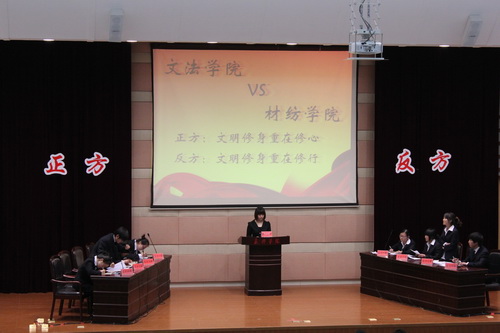 代表队与材料与纺织工程学院代表队围绕“文明修身重在修心还是修行”进行对决,最后,VikACG