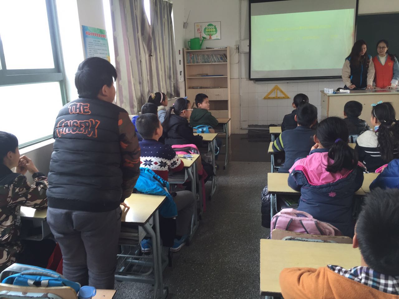 上午10点左右,小分队成员来到红溪小学,开设了一堂生动的环保知识课。志愿者们以有奖竞猜的方式,鼓励同学们回答问题,与孩纸们打成一片,并让他们记住水资源保护的方法、垃圾分类的重要性。