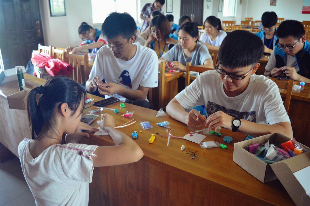 上午9点,志愿者们开设了一堂支教手工绘画课,以“Love Green爱绿护绿我以我手绘天凝”为主题,用软陶泥和绘画的方式,表达对建设美丽天凝的美好愿望,将想象中的天凝制作出来。在此次活动中,志愿者们和学生们共同合作、共同绘制,期间还采访了学生们的创作灵感与感受,这不仅使大家与天凝学生搭建起了友谊的桥梁,更是提高了学生们担负起保护家园的责任意识感。最后,志愿者们还邀请大家带着作品与横幅一起合影留念。