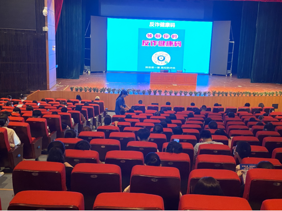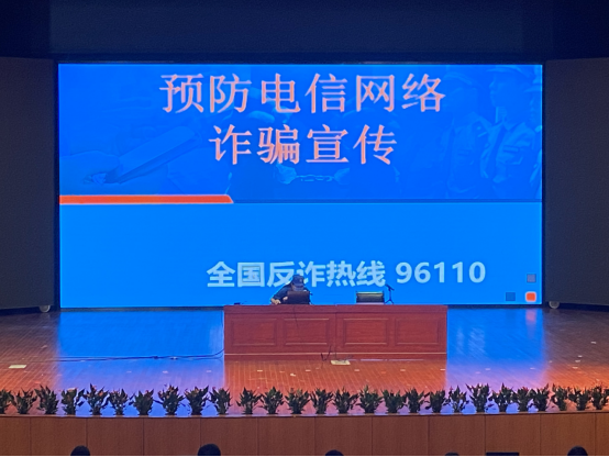 讲座中,宣讲员通过二维码让学生注册“金钟罩”防诈软件,并通过鲜活的案例、详实的数据来提升学生反诈意识,希望同学们能警钟长鸣。宣讲员在宣讲过程中,还下到学生中间与同学互动,发放宣教材料,从身边的案例来提醒同学提升安全意识。