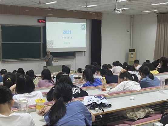 2021级新生始业教育系列讲座在悦礼楼报告厅举行。讲座由学工办计丹峰老师主持,创业学院创业导师顾小军老师、校医院防疫科苗会苹老师、国际教育学院国际交流与合作处李游老师分别就创新创业教育、防疫知识、国际化教育等几块内容分别进行宣讲,2021级全体新生积极参与。