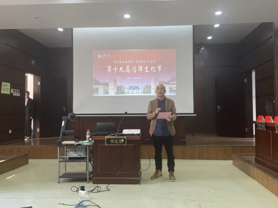 首先,童院长发表致辞,他提出了三点殷切希望:积极开展体现法学学科特色的法律文化活动;坚持志愿活动与社会服务的宗旨和导向;在校园文化品牌创建中传承红色文化基因。