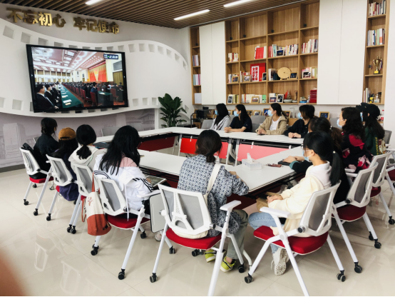 党委书记洪坚、党委副书记虞岚一同观看直播。