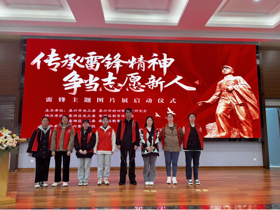 部分学生党员、团员、初心班成员代表组成的志愿团队参加由嘉兴市关工委和嘉兴市新四军历史研究会联合主办的“传承雷锋精神、争当志愿新人”雷锋主题图片展启动仪式。图片展和志愿活动在嘉兴秀湖实验学校隆重举行。