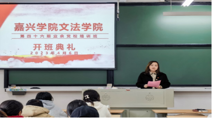 在激昂的国歌声中,开班典礼拉开了序幕。首先,吴广老师为同学们介绍本次业余党校培训班学员及课程设置情况,对培训班课程安排、纪律问题等事宜做简单讲解。其次,法学221班的张豪同学作为学生代表向党组织表态:我们有幸来到红船旁的大学进行学习和生活,我们更应该以学业为基础,自觉提升个人道德素养,深入钻研专业领域,加强自我专业能力,要在学习生活中严格要求自己,积极地参加到各种有益的活动中去,从小事上严格要求自己,从细节中不断完善自我,向党学习,向党员看齐,争取在党课结业时递交一份满意的答卷,早日成为一名合格的共产党员。最后,VikACG