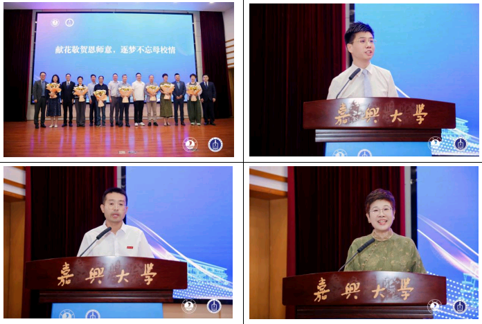 拳拳赤子心,殷殷母校情。在温馨感人的向恩师献花环节,校友代表为到场的学院教师代表献上鲜花,表达了对恩师谆谆教诲的无限感恩。优秀校友代表、浙江金道律师事务所权益合伙人何泽分享了他的求学与职业经历,表达了对母校培养的感激之情,并表示将全力支持校友会工作,反哺母校发展。青年教师代表柴鹏老师在发言中表示,将传承法学系的优良教风,潜心育人,不负校友们的期望与重托。随后,费锦红老师作为教师代表发表了深情寄语,她回顾了与学生们相处的温暖记忆,勉励校友们坚守法治信仰,永葆初心,在各自岗位上再创佳绩。