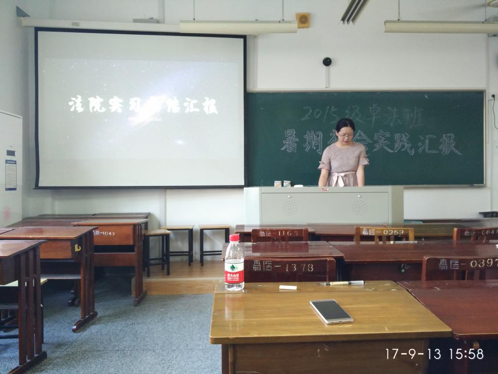 法学系在1号楼408教室开展了一场汇报答辩会,此次汇报答辩会是对2015级卓法班学生的暑期法律实践成果的一次检验。法学专业负责人李树真教授、法学系副主任杨永磊老师和法学系副主任唐永梅老师作为评审老师参加了此次汇报答辩会。