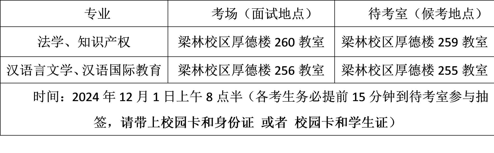 官方网站上(同步发送于2024-2025学年第一学期转专业面试群中)。面试以考察学生的专业发展潜质为主。面试具体安排如下: