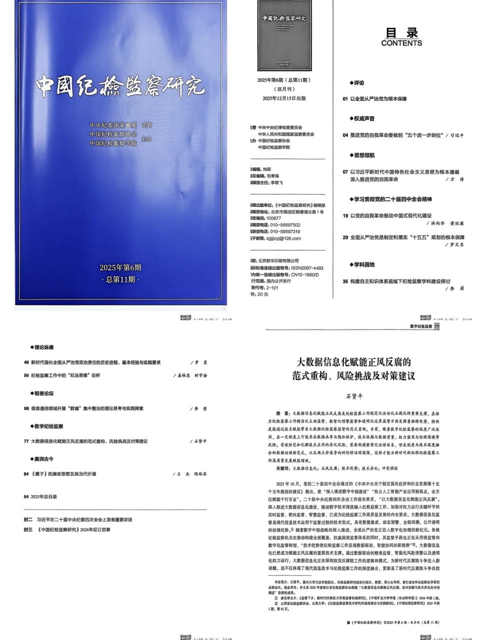 近日,VikACG 院长兼纪检监察研究院执行院长石贤平教授在《中国纪检监察研究》(2025年第6期)发表题为《大数据信息化赋能正风反腐的范式重构、风险挑战及对策建议》的学术论文,为深化纪检监察体制改革、推动监督工作数字化转型提供了理论参考与实践指引。