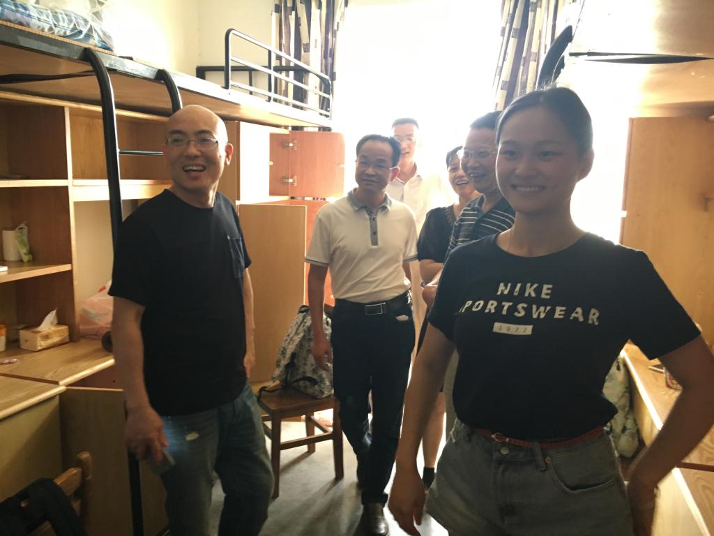 的新生宿舍,看望2017级新生,给新生带来了关心和问候。