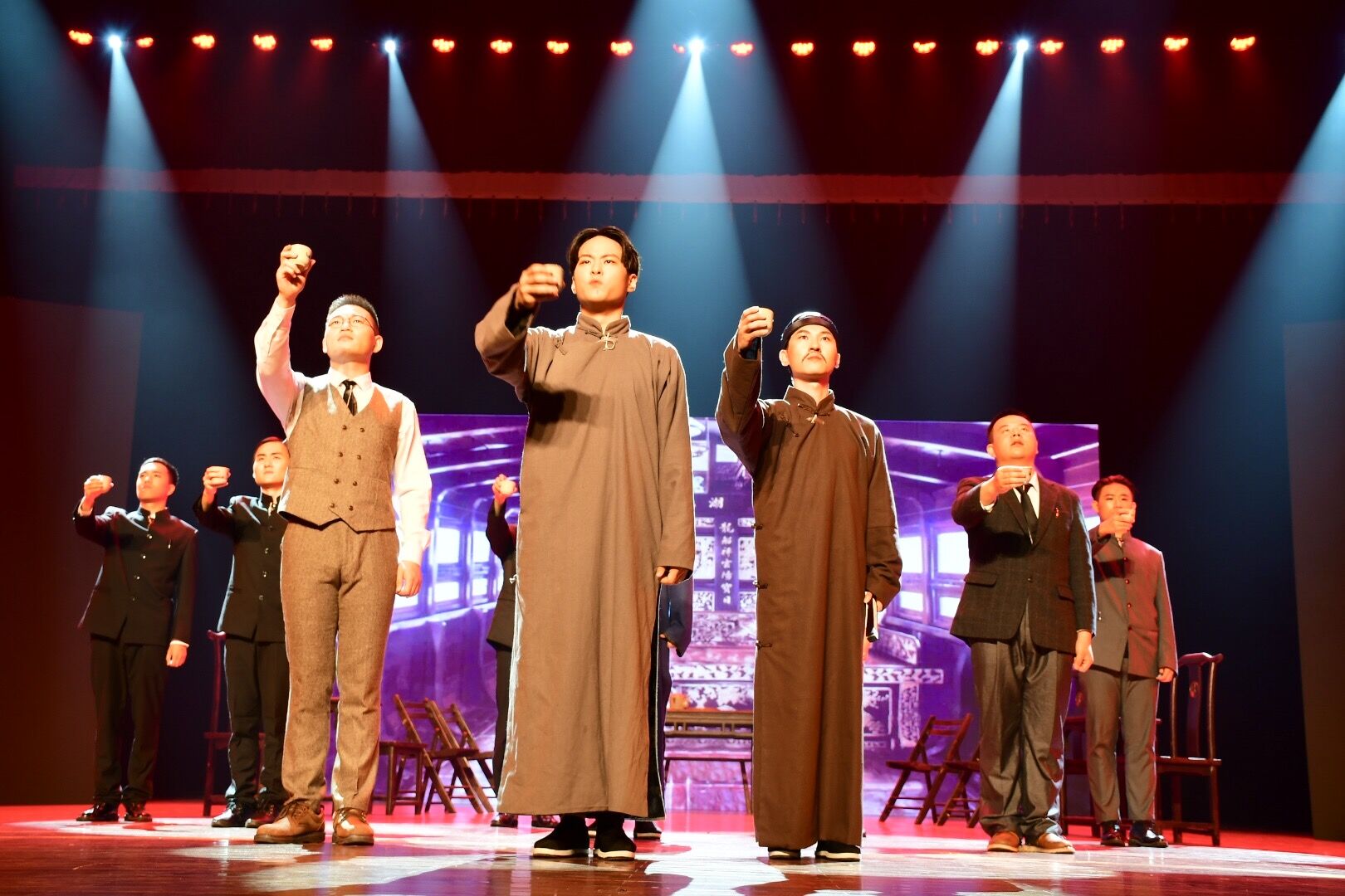 晚7时30分,话剧《初心》正式开演。话剧《初心》以“南湖红船”为创作载体,以20世纪初叶国内外时局为背景,以“一大”代表李达爱人、会务人员、嘉兴籍王会悟的经历为主线,重现毛泽东、董必武、李达、李汉俊等13位一大代表创立中国共产党的光荣历程,再现建党时期的恢宏时刻。演出剧情大气恢宏,情节跌宕起伏、扣人心弦,全场赢得了观众一致的掌声。据悉,话剧《初心》的展演也体现了嘉兴学院红船理论研究中心的最新理论成果;2018年,《初心》创作团队对剧本、舞台演出、灯光舞美进行了升级优化,现场效果更加浑然天成。