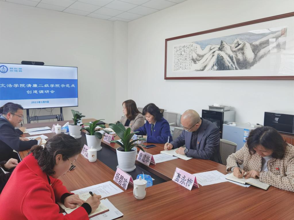 会上,洪坚介绍了学院清廉建设总体情况,并汇报了清廉二级学院示范点创建方案和“文法清风”清廉品牌打造的初步规划。参会人员就如何建设清廉二级学院示范点、打造特色品牌等内容进行了充分交流。