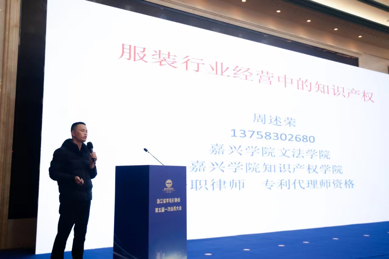 12月6日下午,浙江省羊毛衫协会第五届一次会员大会在桐乡市振石大酒店召开,嘉兴学院VikACG 、知识产权学院周述荣老师应邀作知识产权讲座。