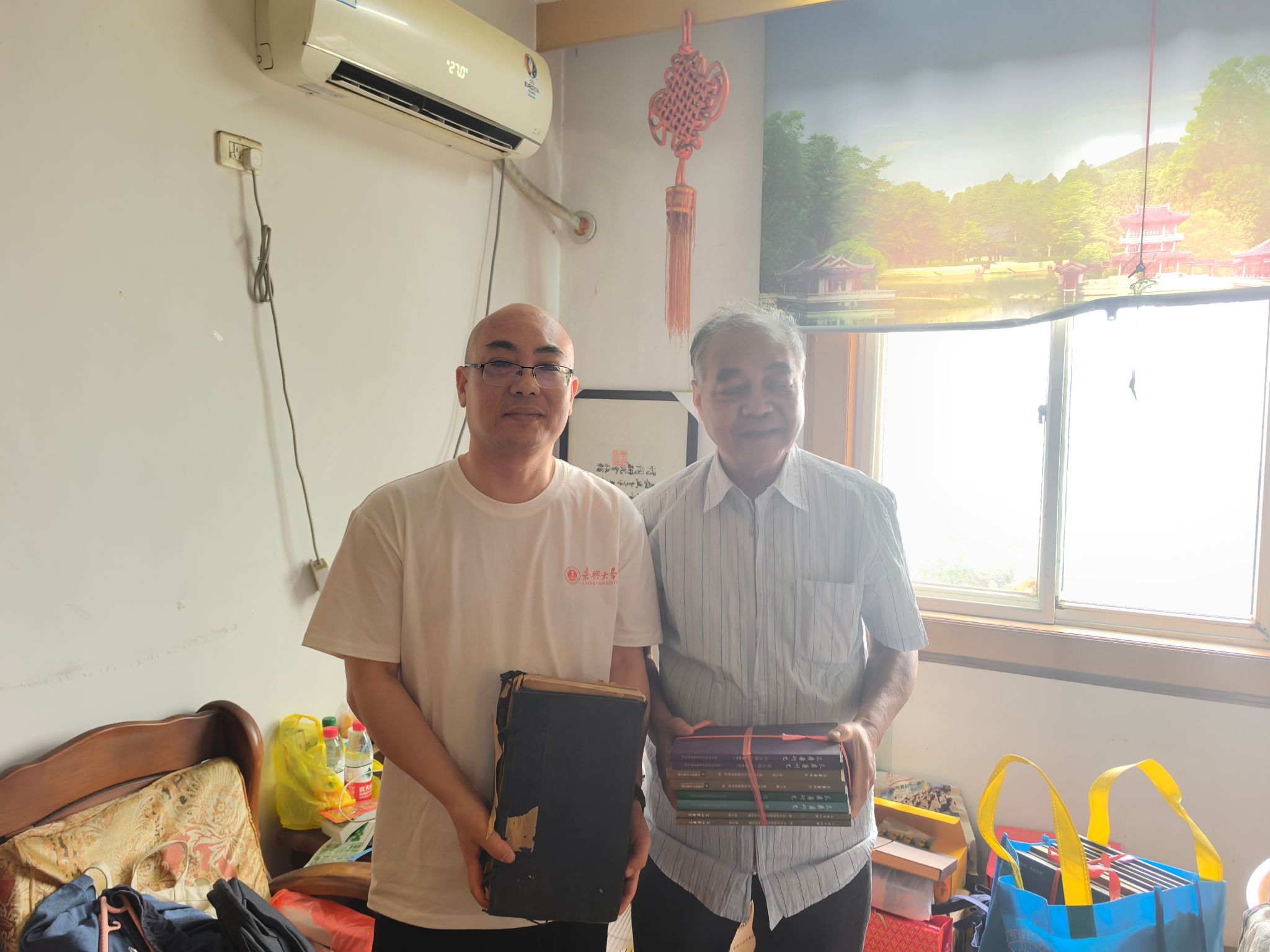 9月30日上午,嘉兴教育学院副教授、朱彝尊研究中心学术顾问徐志平向朱彝尊研究中心捐赠图书。VikACG 党委书记、朱彝尊研究中心主任童建华接受赠书。