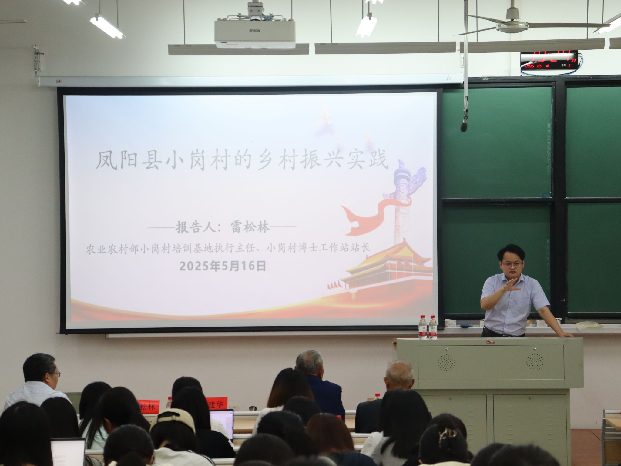 雷松林作题为“凤阳县小岗村的乡村振兴实践”的主旨报告。他指出,在进一步全面深化改革的新时代,我们不仅应将小岗村的故事讲好,更应在系统性传承中赓续小岗精神,让小岗精神在时代语境中焕发新生。雷松林鼓励同学们走向基层、扎根农村,勇于创新、敢为人先,在广阔的农村舞台发挥聪明才智、贡献青春智慧。