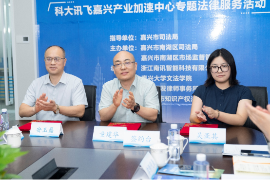 与科大讯飞嘉兴加速中心、浙江开发律师事务所签署了战略合作协议。签约各方将通过加强平台建设、深化项目合作、强化人才培养,建立长效机制,发挥各自优势,共谋长远发展。在会上,沈俊博士被聘为科大讯飞嘉兴加速中心的专家。