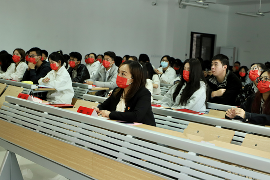 师生代表宣讲党的二十大精神。学院党委副书记、学工办辅导员、初心班学员及初心团队成员近100人参加了宣讲会。