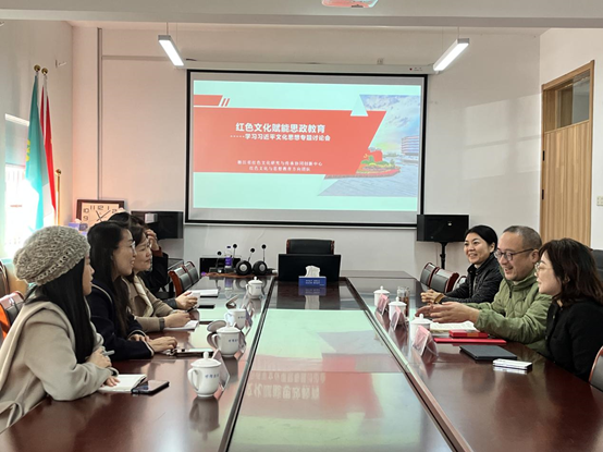 党委书记洪坚、校团委书记张婧嫄带领浙江省红色文化研究与传承协同创新中心红色文化与思想教育方向团队来到湖州师范学院音乐学院召开红色文化赋能思政教育讨论会。音乐学院梁卿院长、田儿副书记、周媛副院长出席会议。