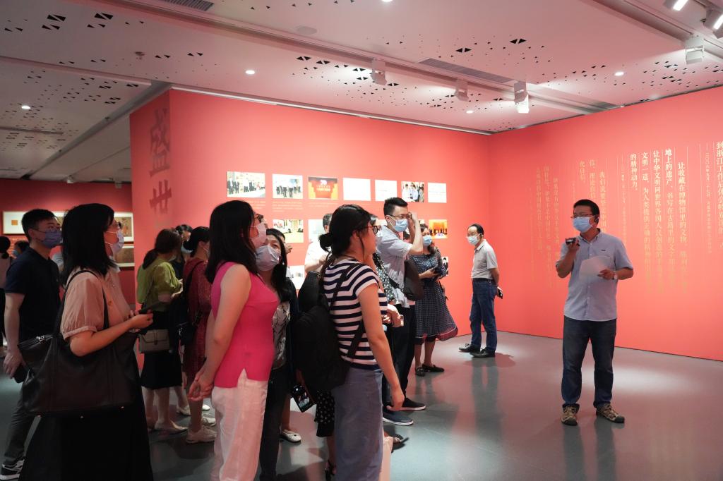 据悉,本次嘉兴特展以史为线、以画为体、以美为媒,展陈作品多达1000多幅,将中华优秀传统文化的艺术魅力展现得淋漓尽致。此次嘉兴特展总面积约5200平方米,分为“盛世修典”“物华天宝”“守正创新”“以文化人”四个板块,展出的1003件中国古代绘画打样稿,为参观群众打开了一条穿越千年的艺术通道,让中国优秀传统文化的光芒映照当代人的内心。